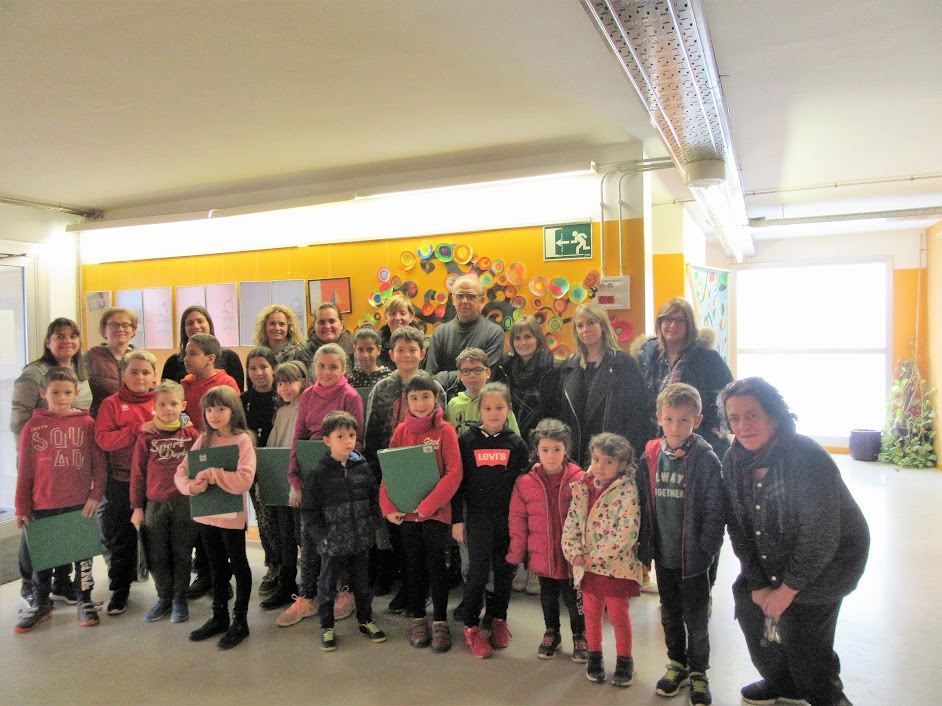 novembre, els nens i nenes de cicle mitjà i superior, amb les mestres i el